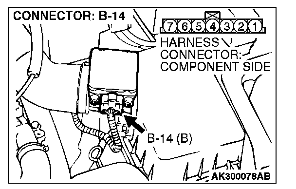 STEP 2. Check connector B-14 at the intake air temperature sensor for damage.