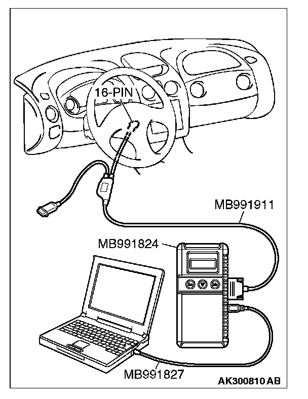 CAUTION: To prevent damage to scan tool MB991958, always turn the ignition switch to the "LOCK" (OFF) position before connecting or disconnecting scan tool MB991958.