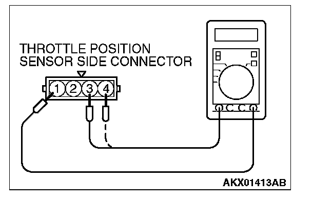 3. Measure resistance between the throttle position sensor side connector terminal No. 1 and No. 3.