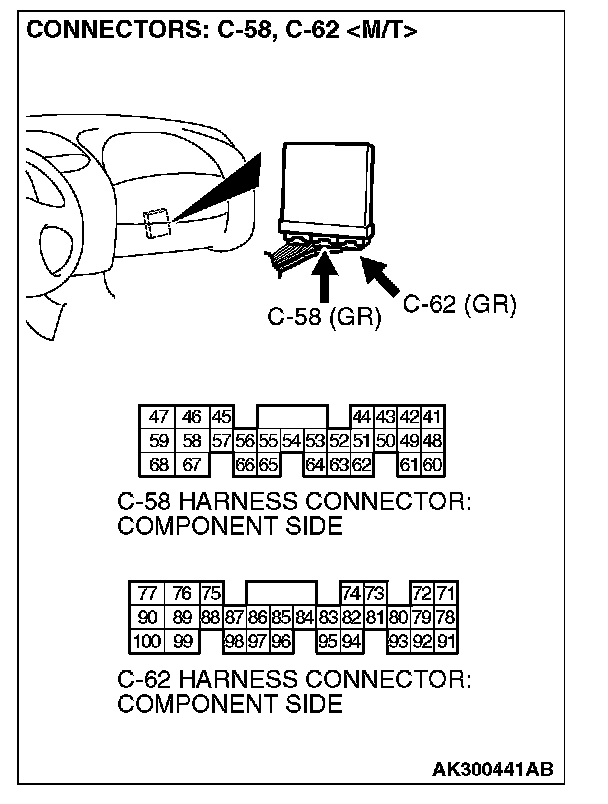 STEP 10. Check connector C-58, C-62 at ECM