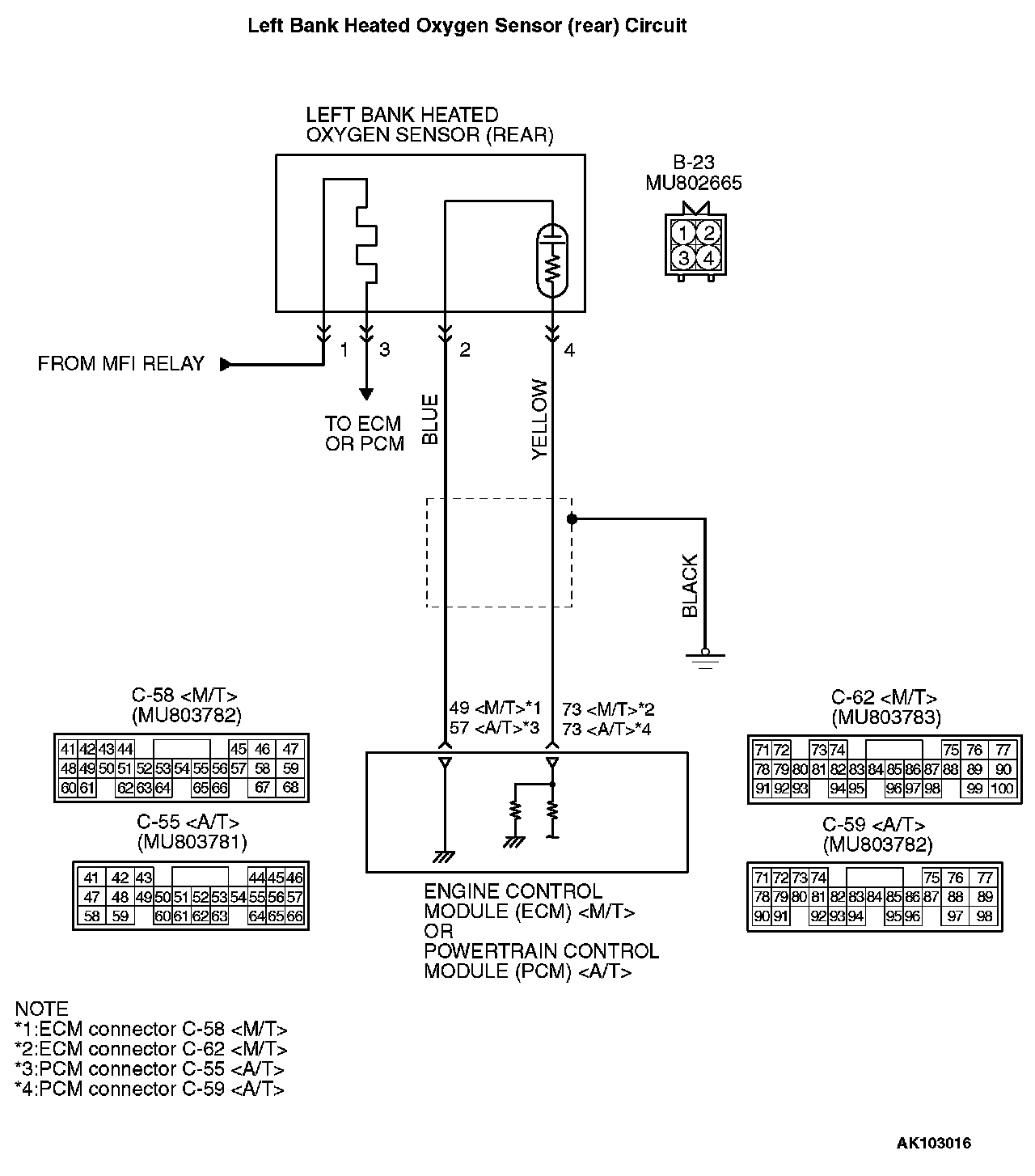 - Terminal No. 2 of the left bank heated oxygen sensor (rear) is grounded with ECM (terminal No. 49)