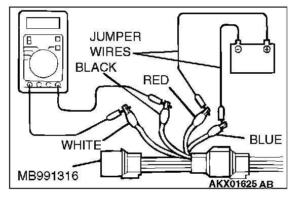 4. Connect a digital volt meter between terminal No. 2 (black clip) and terminal No. 4 (white clip).