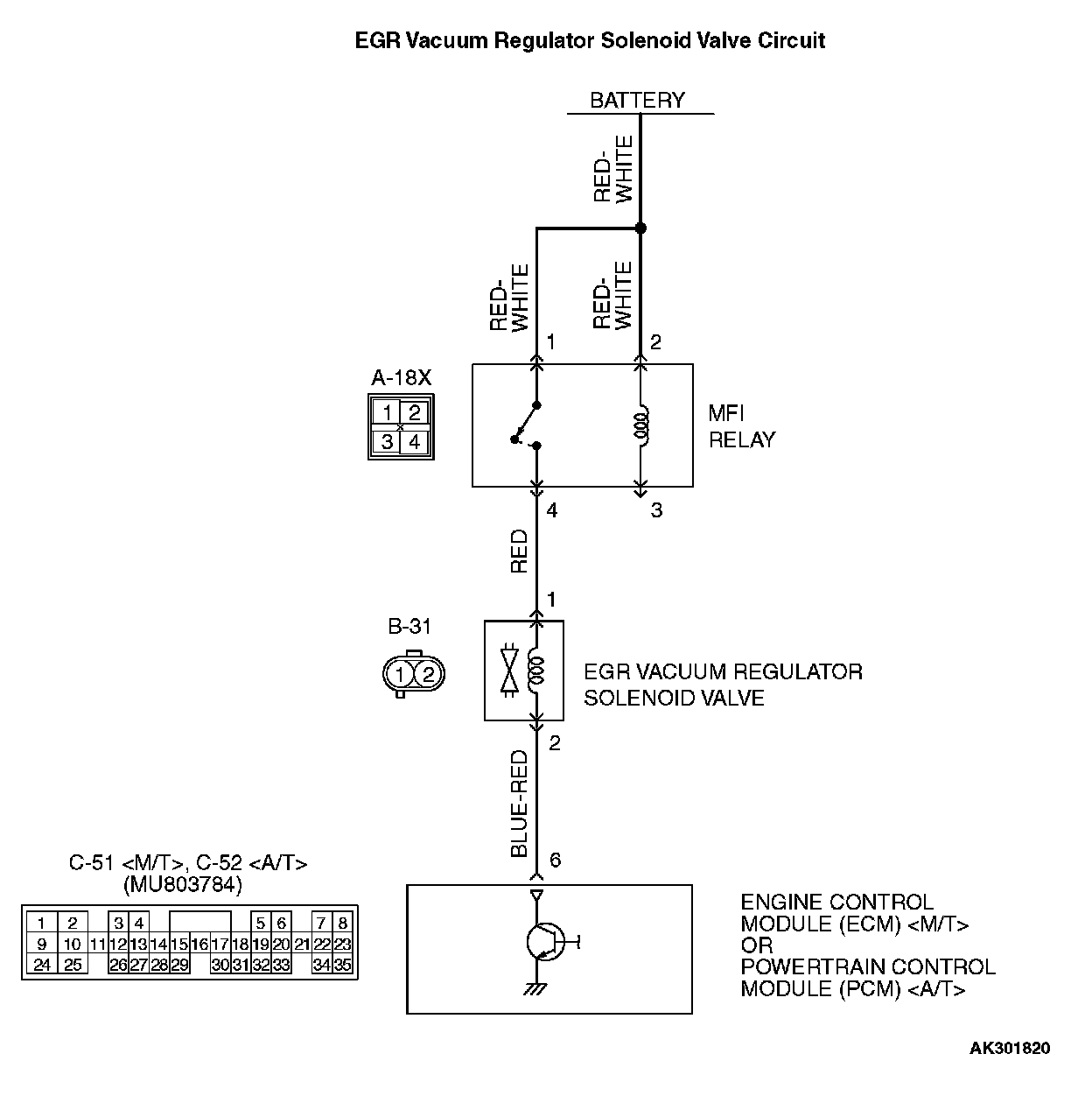- The EGR vacuum regulator solenoid valve power is supplied from the MFI relay (terminal No. 4).