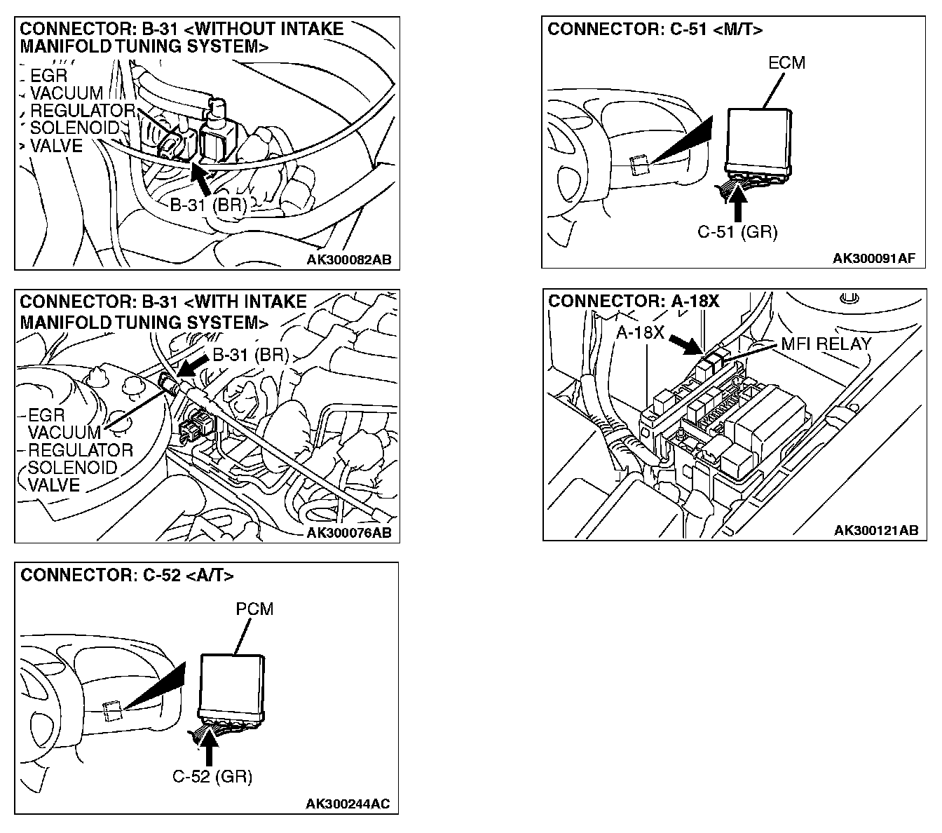 STEP 10. Check for harness damage between MFI relay connector A-18X (terminal No. 4) and EGR vacuum regulator solenoid valve connector B-31 (terminal No. 1).