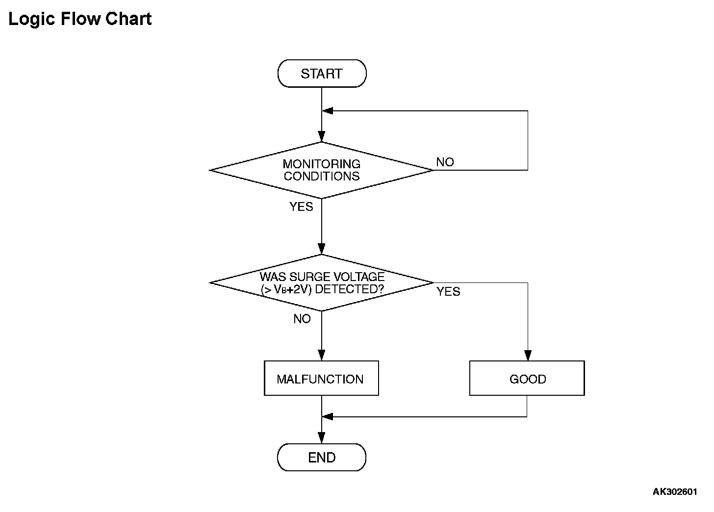 - The EGR vacuum regulator solenoid valve coil surge voltage (battery positive voltage + 2 volts) is not detected for 0.2 second.