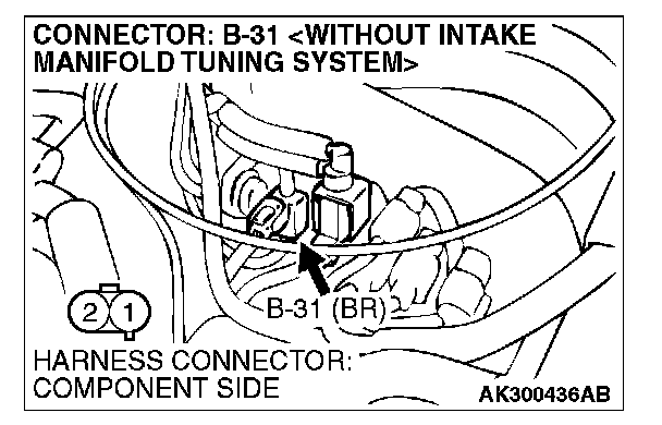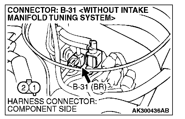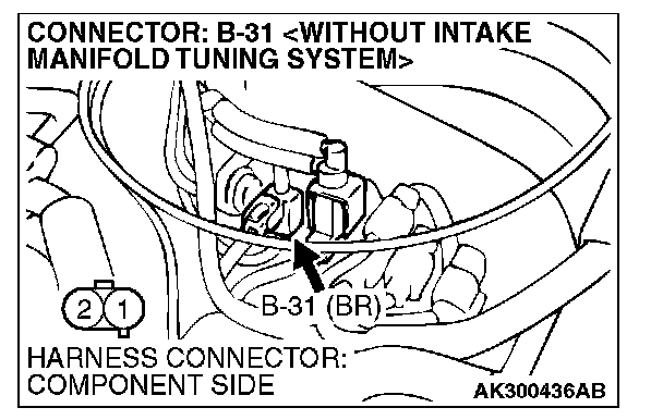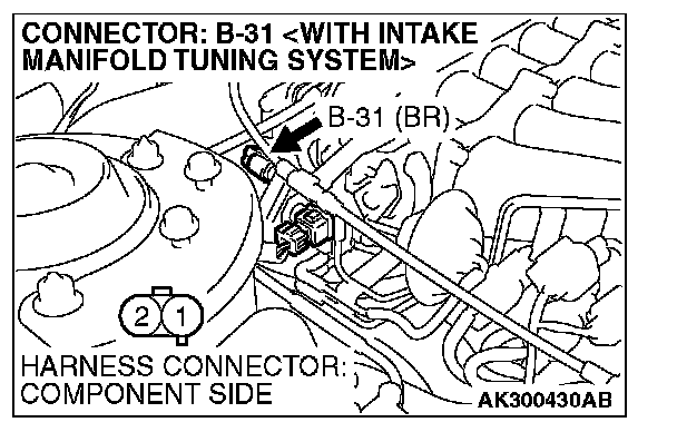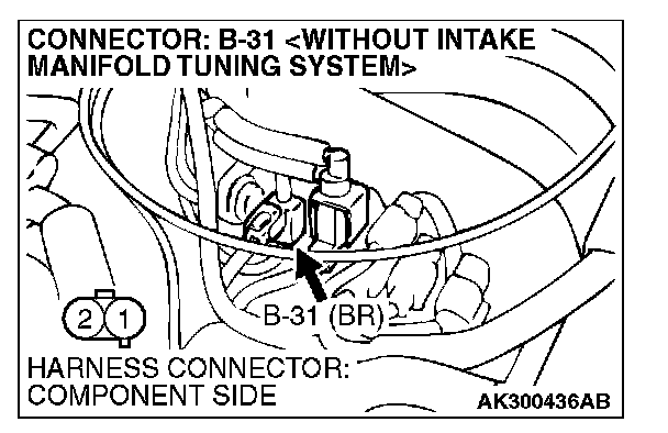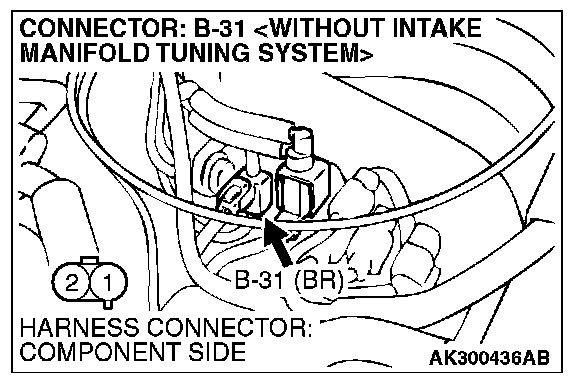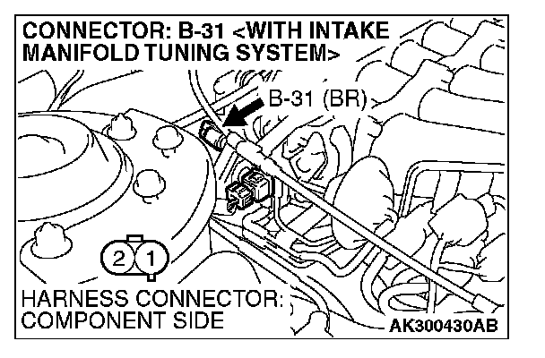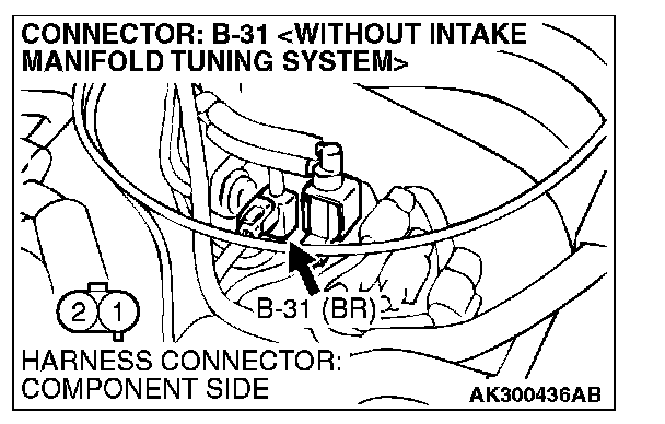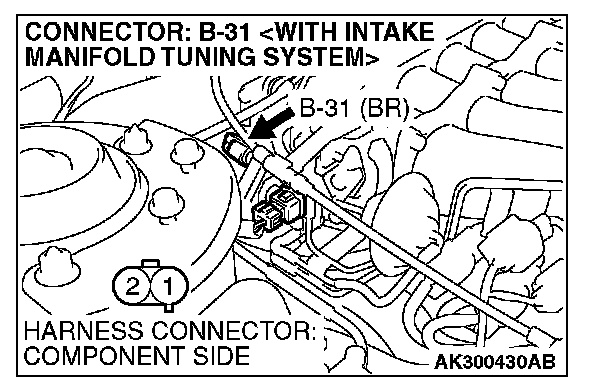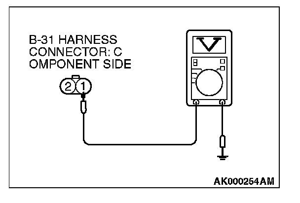 STEP 4. Check the power supply voltage at EGR vacuum regulator solenoid valve harness side connector B-31.