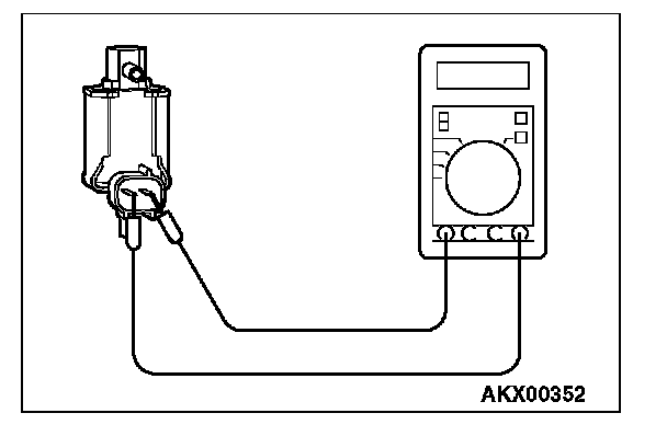 2. Measure the resistance between EGR vacuum regulator solenoid valve side connector terminal No. 1 and No. 2.