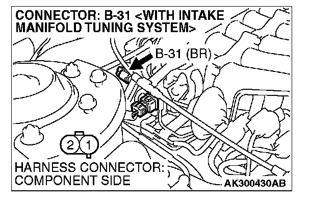 STEP 2. Check connector B-31 at the EGR vacuum regulator solenoid valve for damage.