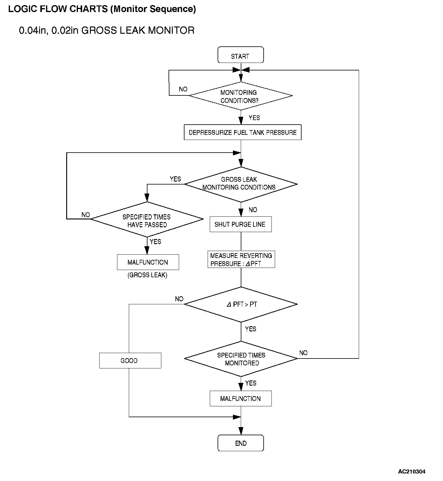 - Internal pressure of the fuel tank fluctuate 1177 - 1373 Pa (0.171 - 0.199 psi) or more in 128 seconds after the tank and vapor line were closed.