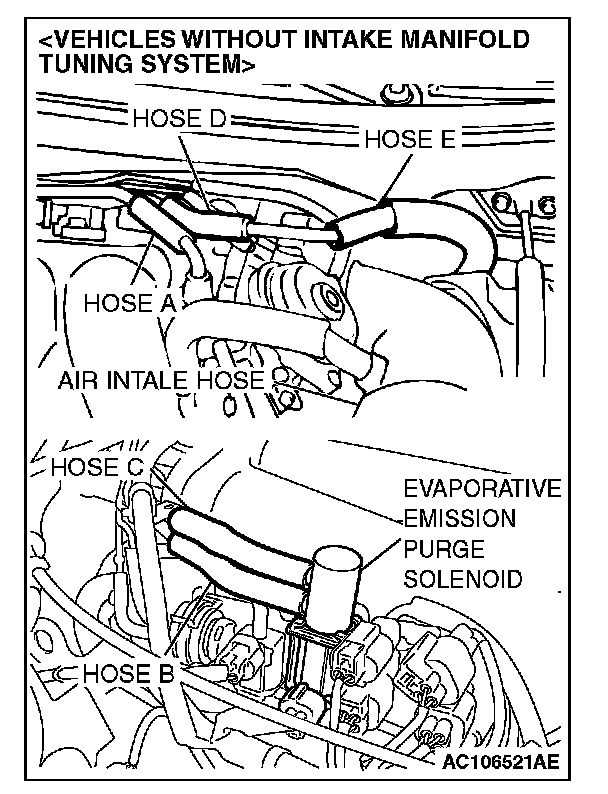 1. Disconnect hose I from the evaporative emission canister side, and plug the hose from which the pipes have been disconnected.