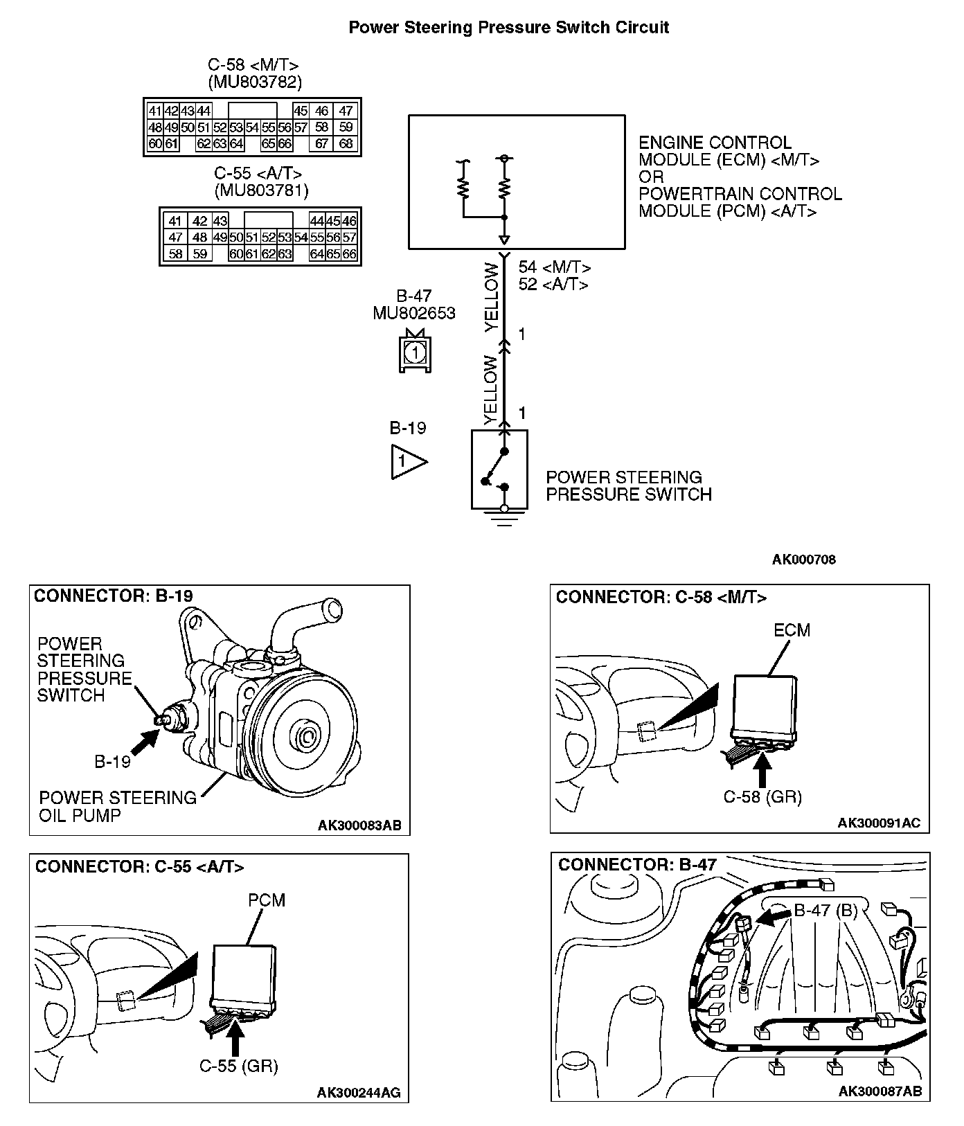 STEP 5. Check harness connector B-19 at the power steering pressure switch and harness connector C-58 at ECM