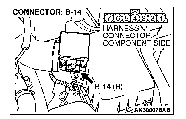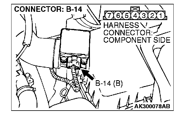 STEP 7. Check the ground voltage at barometric pressure sensor connector B-14 by backprobing.