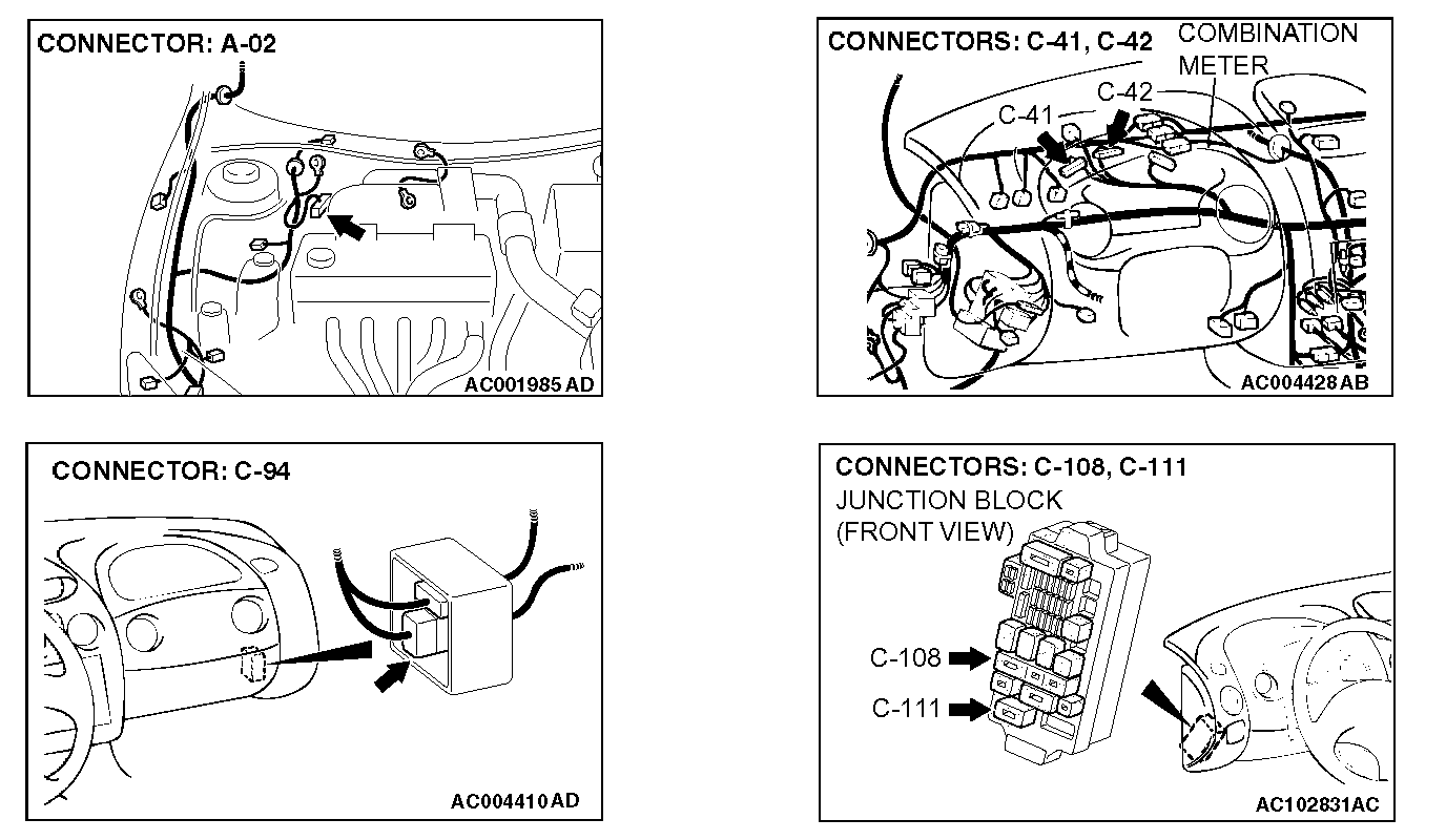 STEP 4. Check the following connectors: the combination meter connector C-42 and the intermediate connector C-94.