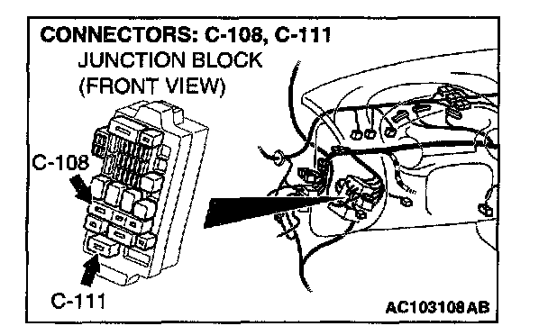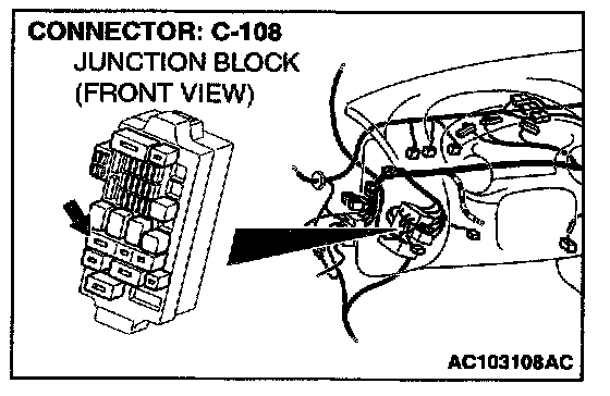STEP 3. Check the output circuit voltage at junction block connector C-108 (terminal number 25) by backprobing.