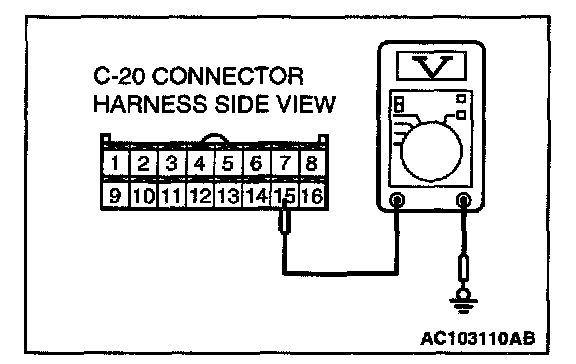 STEP 2. Check the output circuit voltage at auto-cruise control-ECU connector C-20 (terminal number 15) by backprobing.