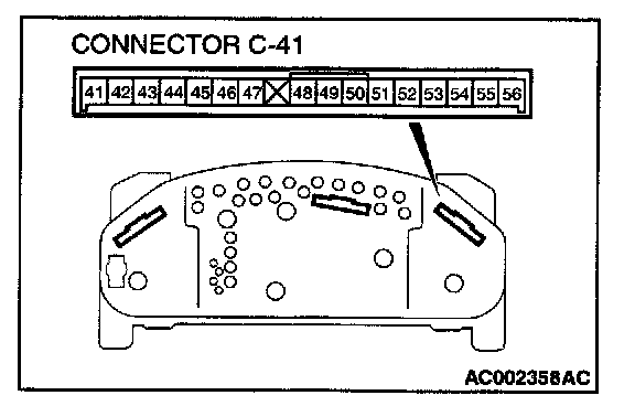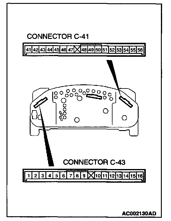 STEP 9. Check the harness wire between combination meter connector C-41 (terminal number 52) and C-43 (terminal number 1).