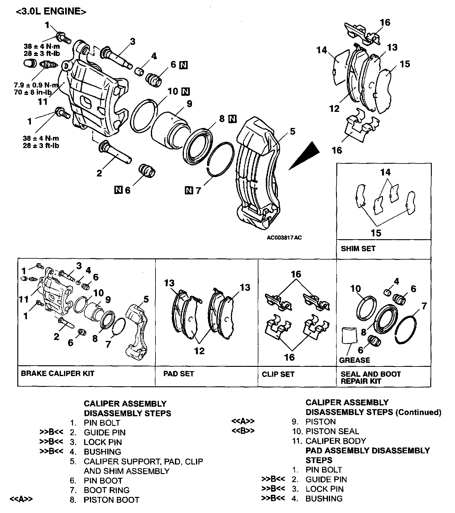 FRONT DISC BRAKE ASSEMBLY OVERHAUL W/ RELATED COMPONENTS