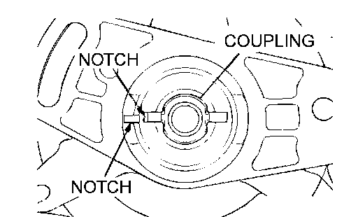 2. Rotate the distributor shaft coupling until its notch (mating mark) is lined up with the notch (mating mark) in the housing.