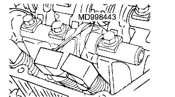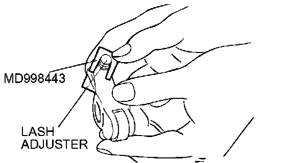 Set special tool MD998443 to prevent the lash adjuster coming free and falling to the floor.