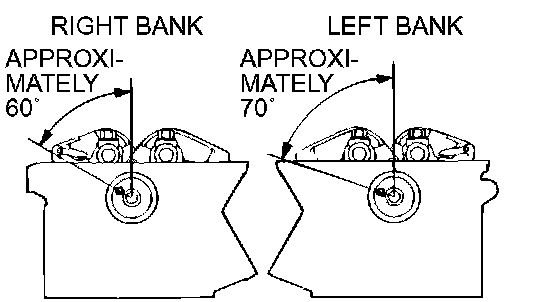 NOTE: Placing the camshaft in the illustrated position minimizes the amount of cam lift, making it easier to install the rocker arm and shaft assemblies.