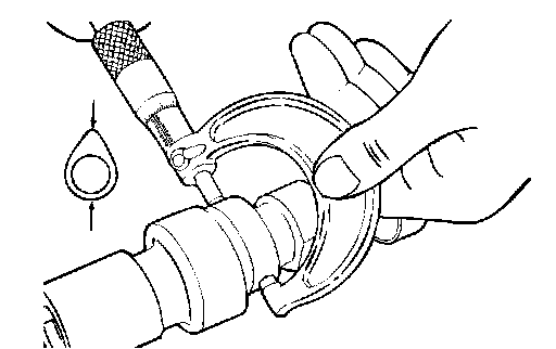 1. Apply engine oil to the lip area of the oil seal and the front end outside diameter of the camshaft.