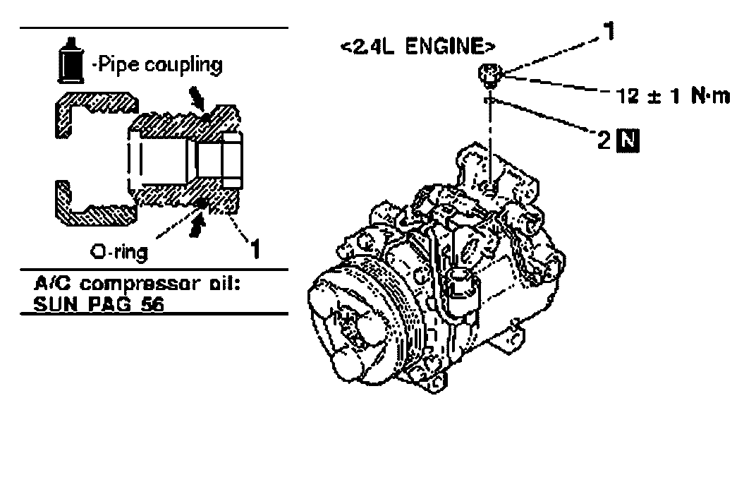 2. The compressor oil has to be contained as follows before installing the compressor in this vehicle.