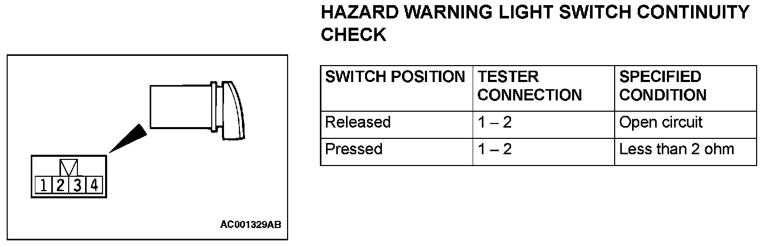 Hazard Warning Light Switch Continuity Check: