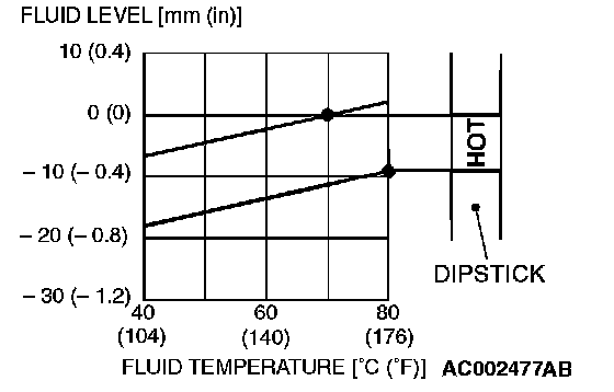 NOTE: If it takes some amount of time until the transmission fluid reaches its normal operating temperature [70 - 80 °C (158 - 176°F)], check the transmission fluid level.