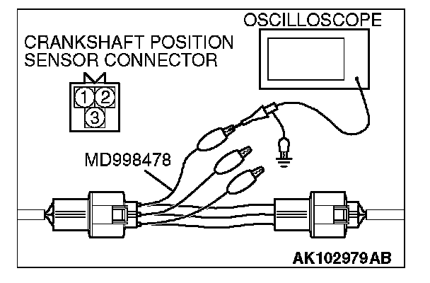 4. Connect the oscilloscope probe to crankshaft position sensor connector terminal 2 (black clip of special tool).