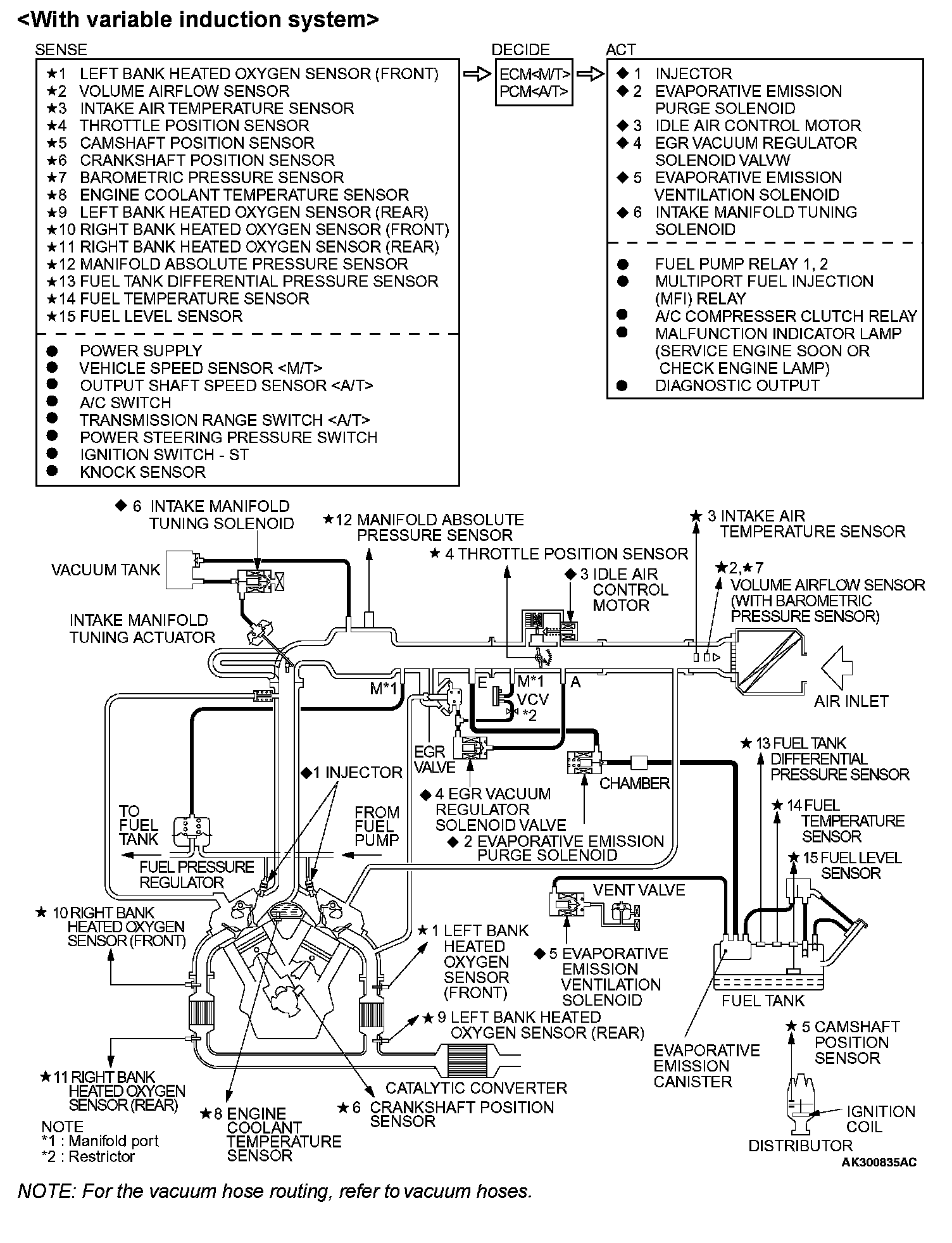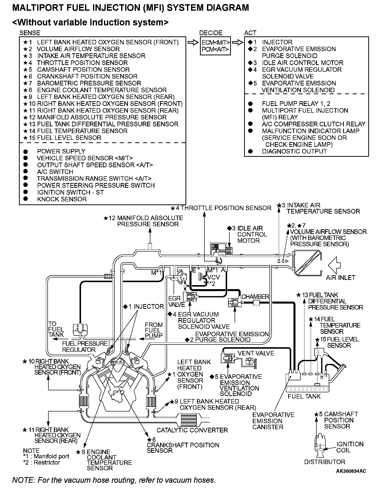 The Multiport Fuel Injection System consists of sensors which detect the engine conditions, the ENGINE CONTROL MODULE (ECM)