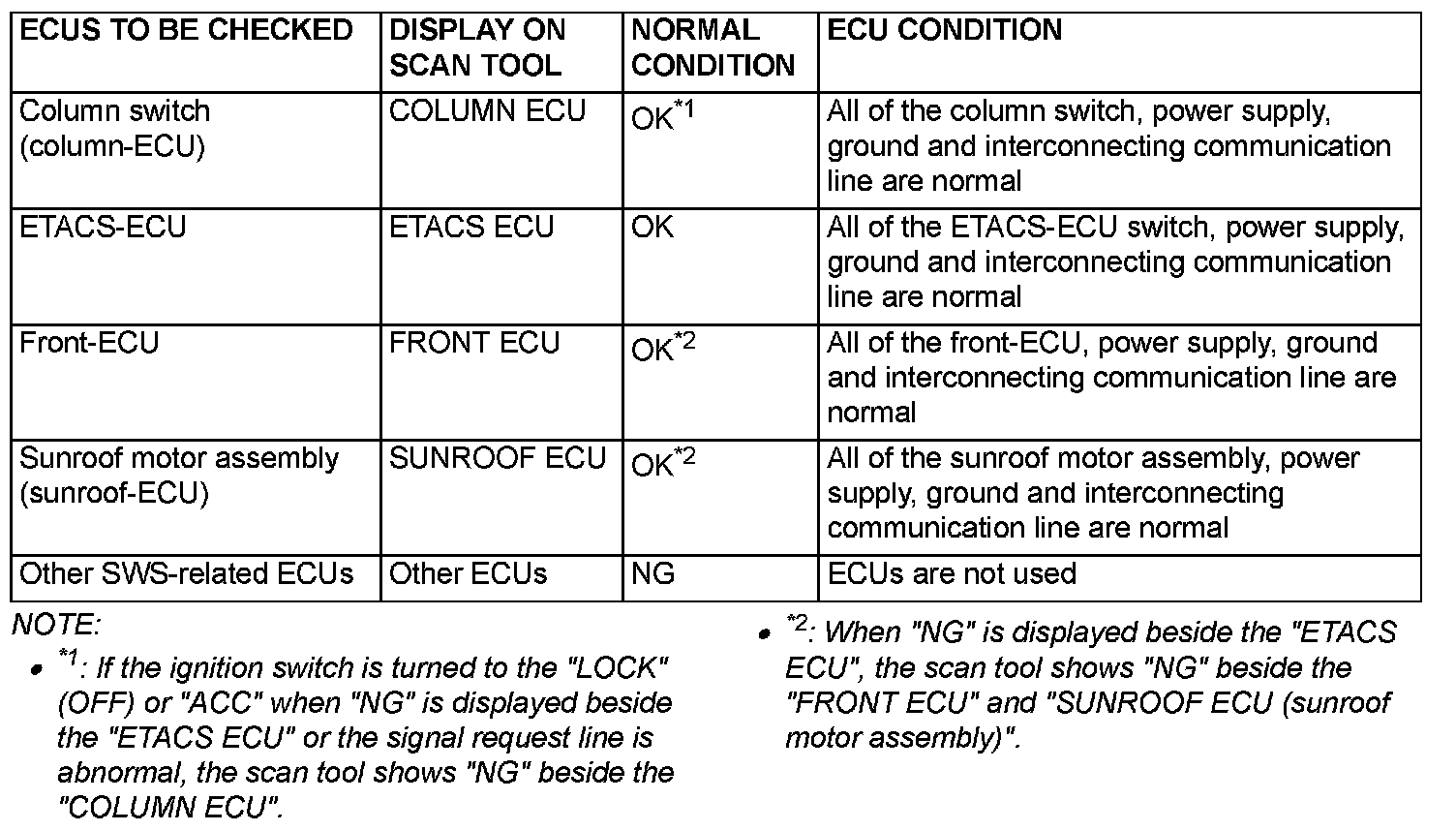 2. The following ECUs can be checked by using the scan tool and the SWS monitor kit.