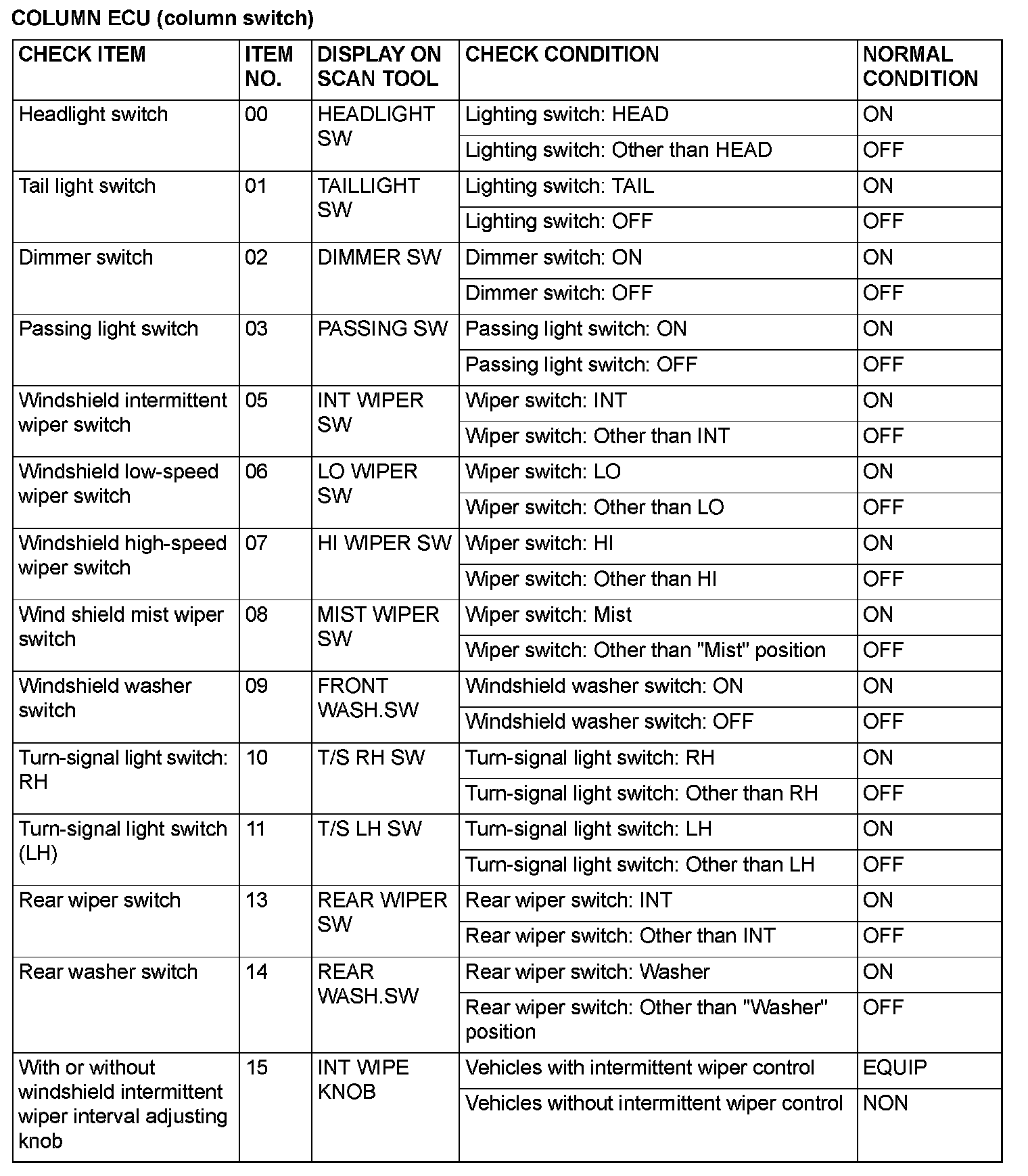 COLUMN ECU (column switch)