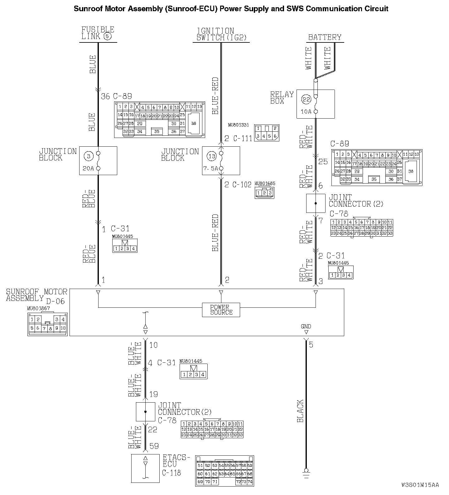 Q: Are sunroof motor assembly connector D-06 and ETACS-ECU connector C-118 in good condition?