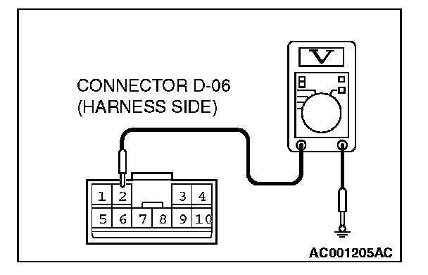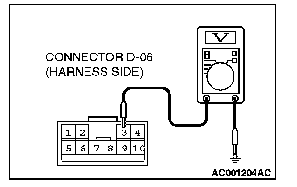 1. Measure at sunroof motor assembly connector D-06 without disconnecting it.