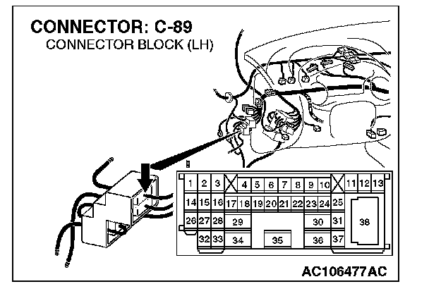 NOTE: Also check intermediate connectors C-31 and C-89. If intermediate connector C-31 or C-89 is damaged, repair or replace the connector as described in Harness Connector Inspection.