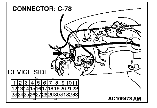 NOTE: Also check intermediate connector C-31 and joint connector C-78. If intermediate connector C-31 or joint connector C-78 is damaged, repair or replace the connector as described in Harness Connector Inspection.