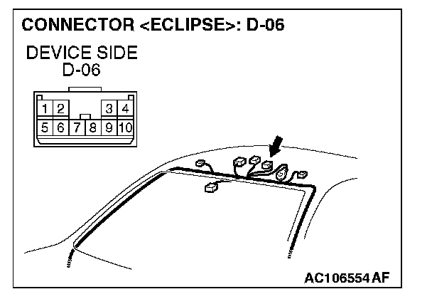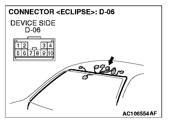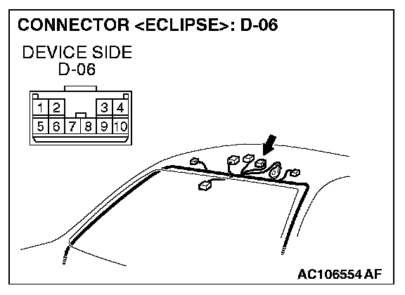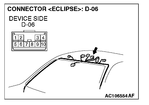 STEP 10. Measure at sunroof motor assembly connector D-06 in order to check the ground circuit to the sunroof motor assembly.