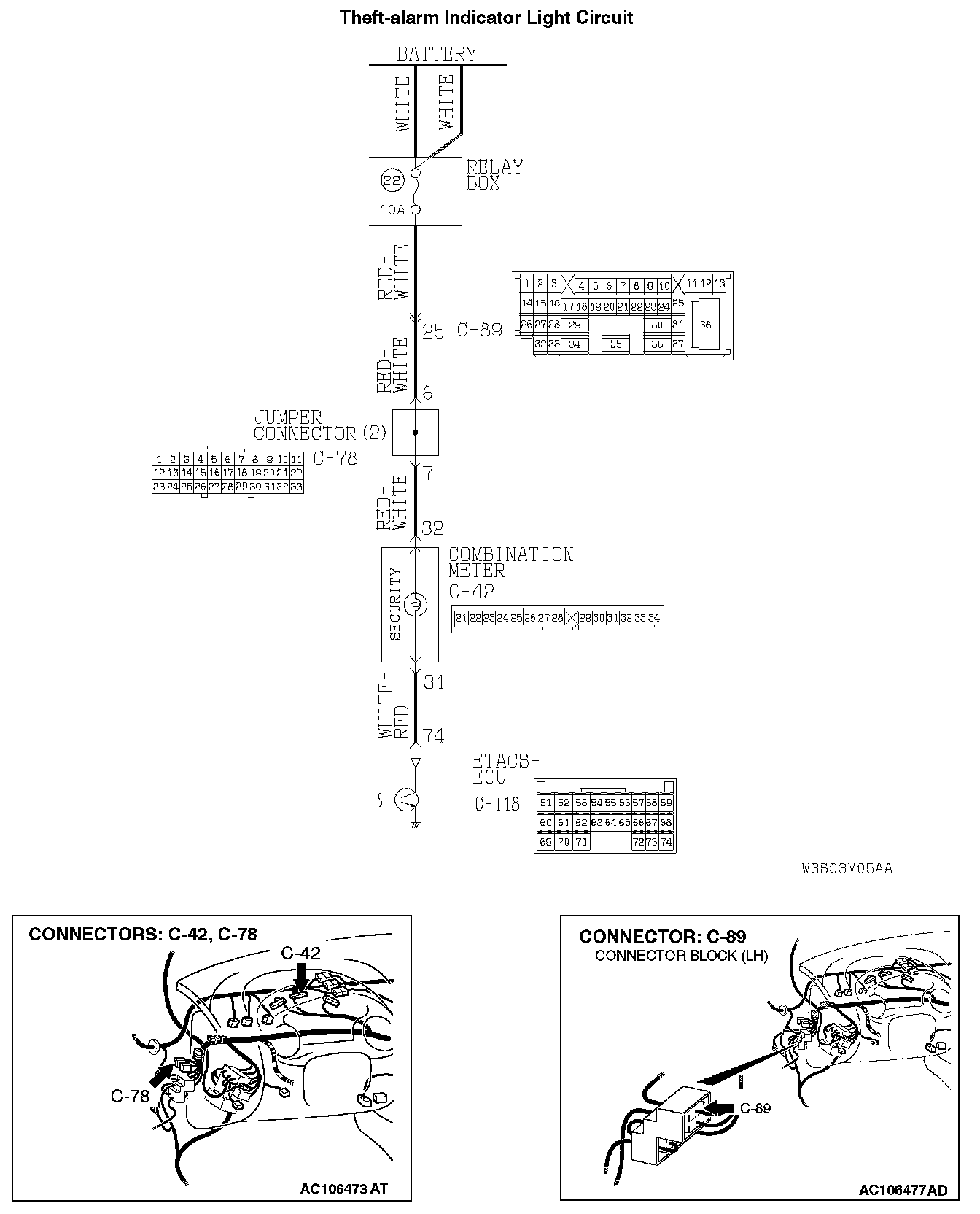 STEP 2. Check at ETACS-ECU connector C-118 in order to check the theft-alarm indicator light circuit.