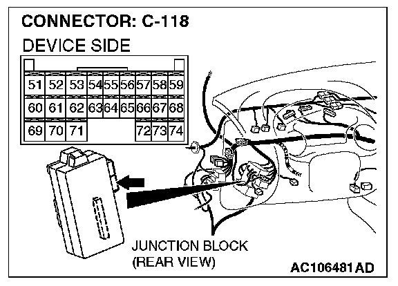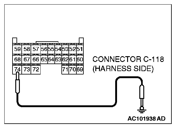 1. Disconnect ETACS-ECU connector C-118, and measure at the wiring harness side.