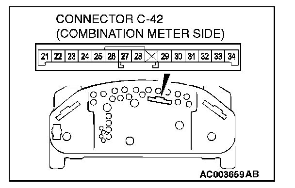 1. Disconnect combination meter connector C-42, and check at the wiring harness side.