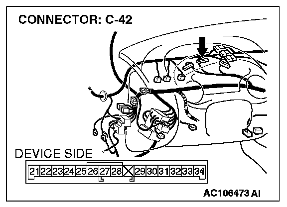 STEP 5. Check at combination meter connector C-42 in order to check the battery power supply line to the theft-alarm indicator light circuit.