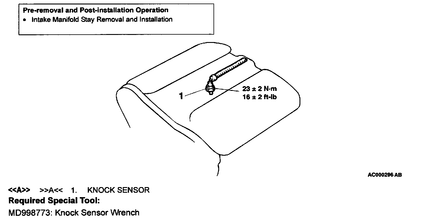 CAUTION: Do not drop or hit the knock sensor against other components. Internal damage may result, and the knock sensor will need to be replaced.