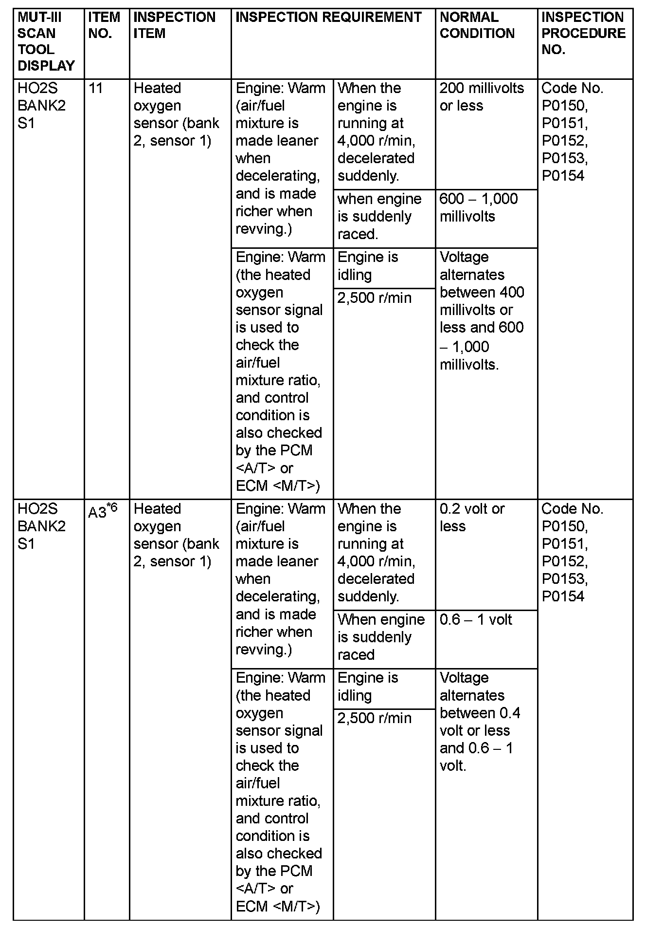 NOTE: Sensor 1 indicates the sensor mounted at a position closest to the engine, and sensor 2 indicates the sensor mounted at the position second close to the engine.