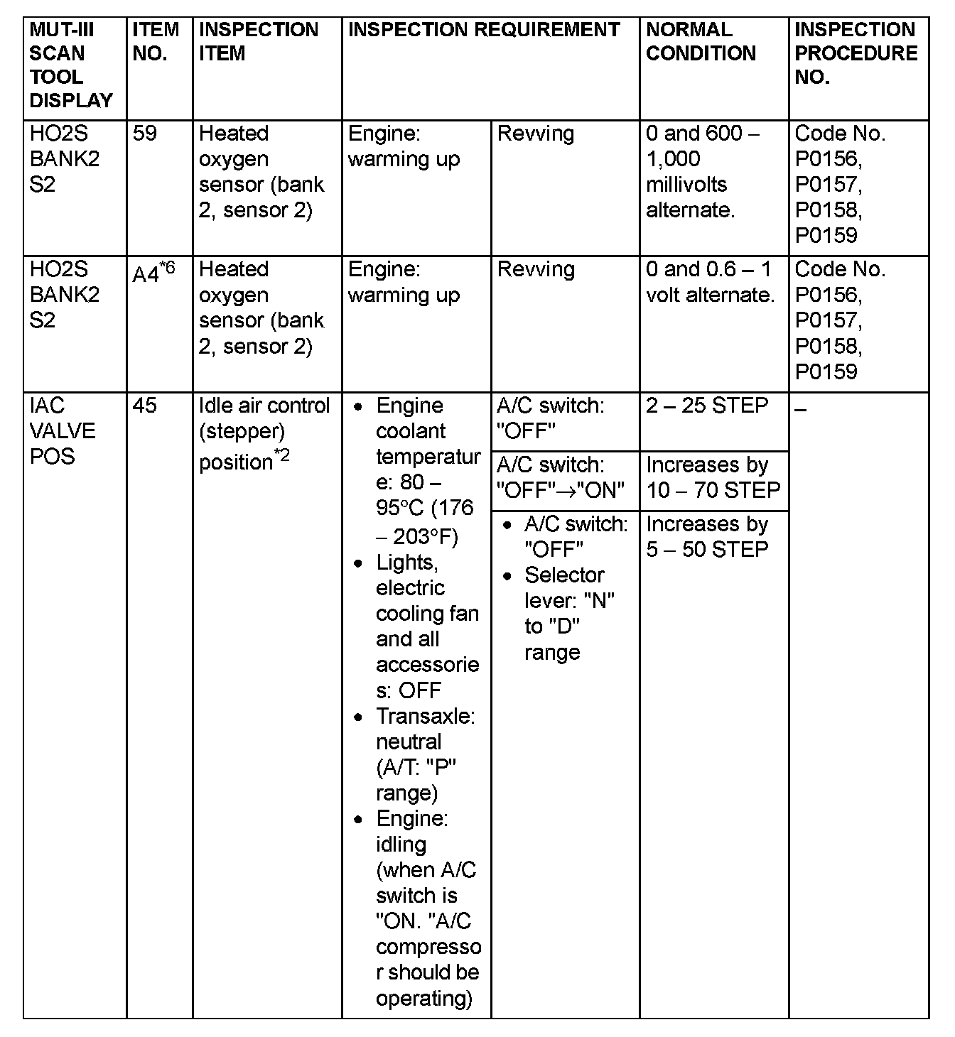 NOTE:*2: In a new vehicle [driven approximately 500 km (311 mile) or less], the step of the stepper motor is sometimes 30 steps greater than the standard value.