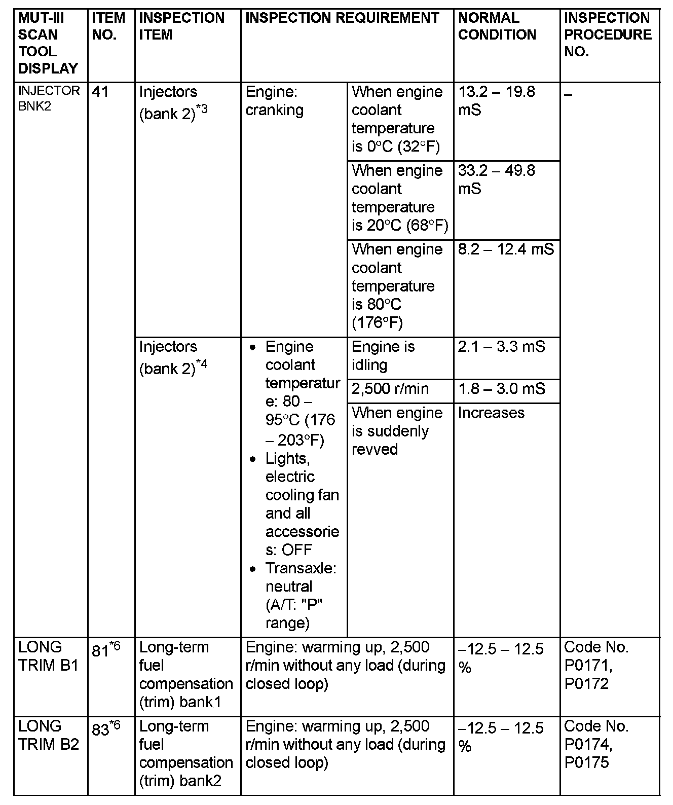 NOTE:*4: In a new vehicle [driven approximately 500 km (311 mile) or less], the injector drive time is sometimes 10 percent longer than the standard time.