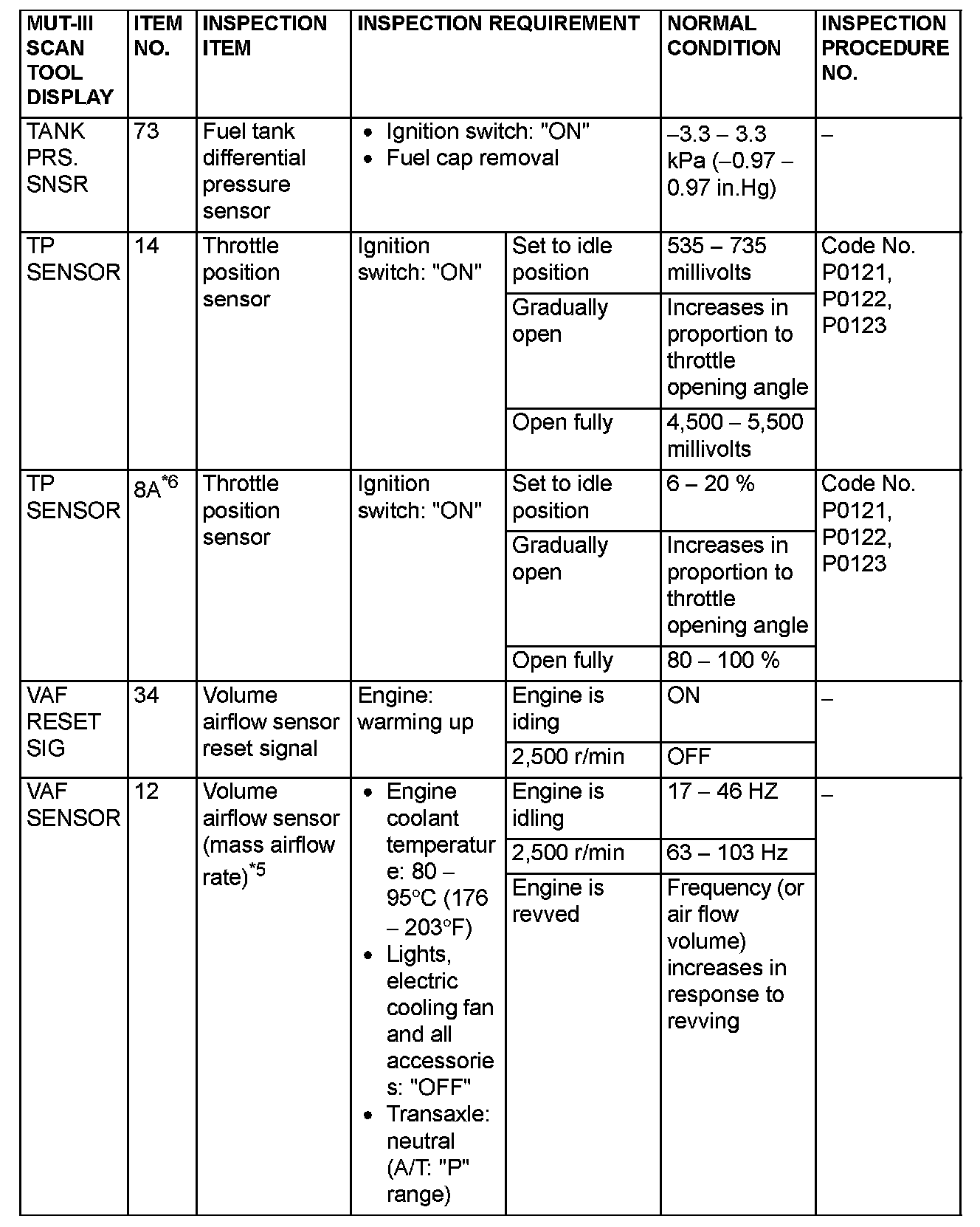 NOTE:*5: In a new vehicle [driven approximately 500 km (311 mile) or less], the volume airflow sensor output frequency is sometimes 10% higher than the standard frequency.