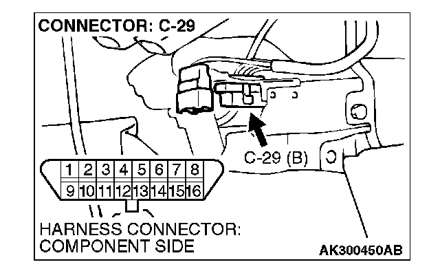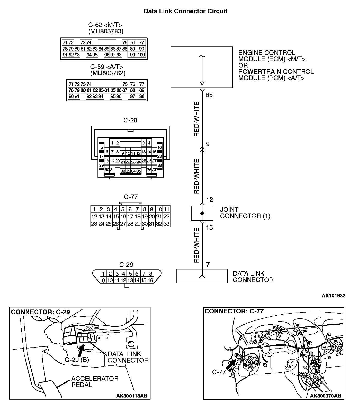 STEP 2. Check for open circuit, short circuit to ground and harness damage between data link connector C-29 (terminal No. 7) and ECM connector C-62 (terminal No. 85)