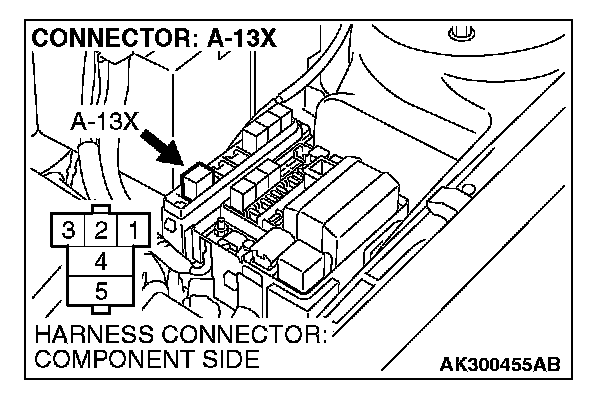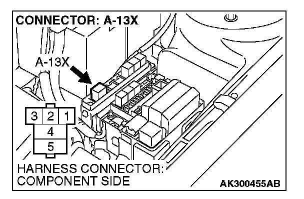 STEP 3. Check the power supply voltage at starter relay connector A-13X.