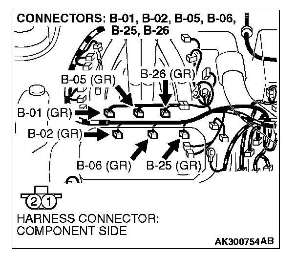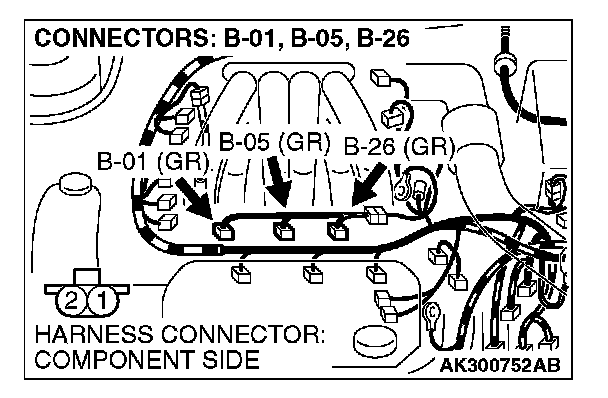 STEP 11. Check connector B-01 or B-05 or B-26 at right bank injector for damage.