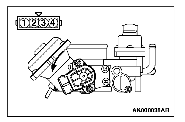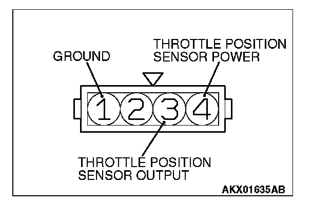 3. Connect an ohmmeter between terminals 1 (ground) and 3 (output), or between terminals 3 (output) and 4 (power). Then, make sure that the resistance changes smoothly when the throttle valve is slowly moved to the fully open position.